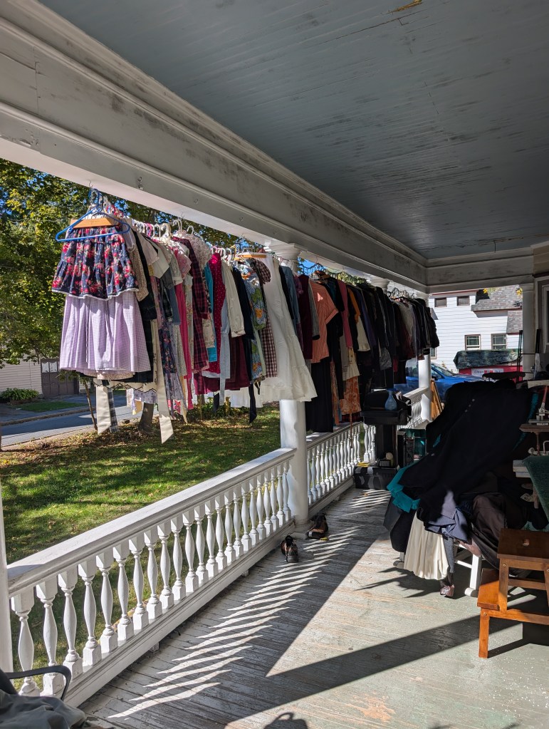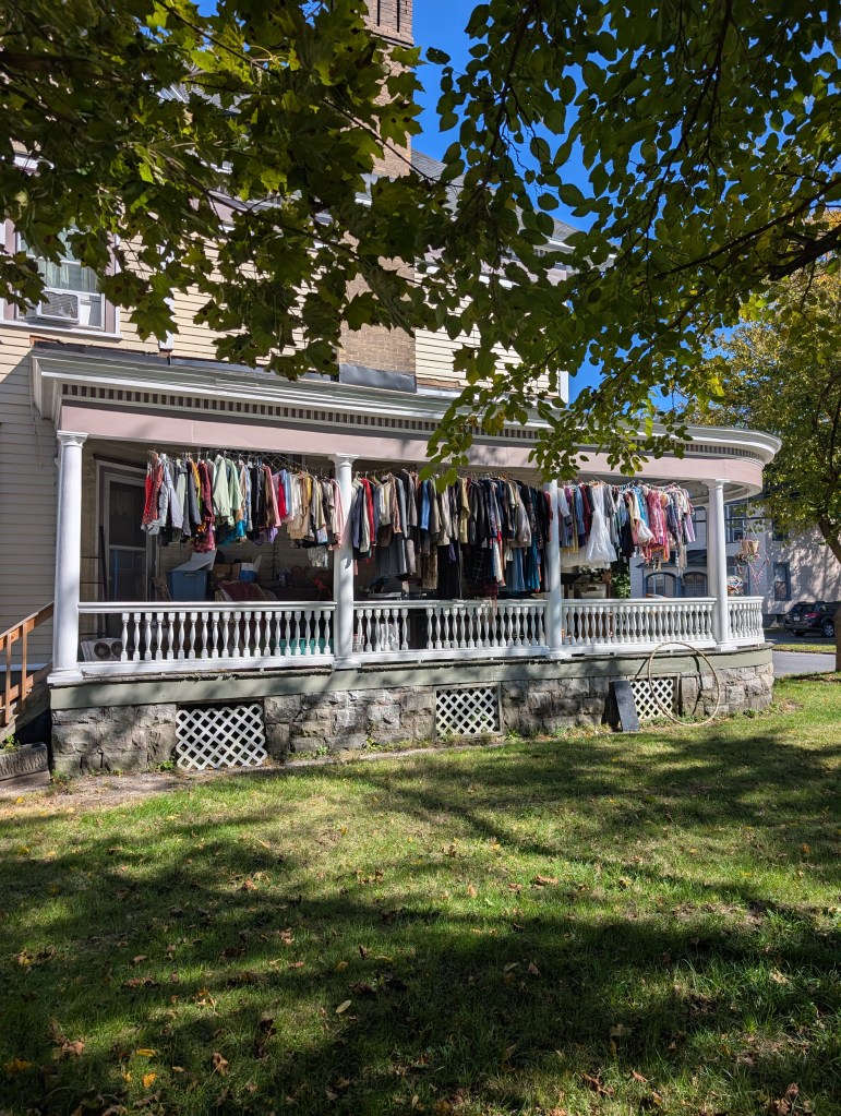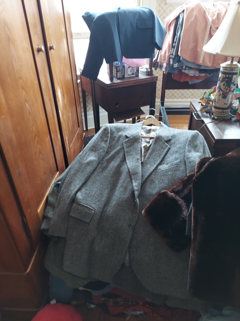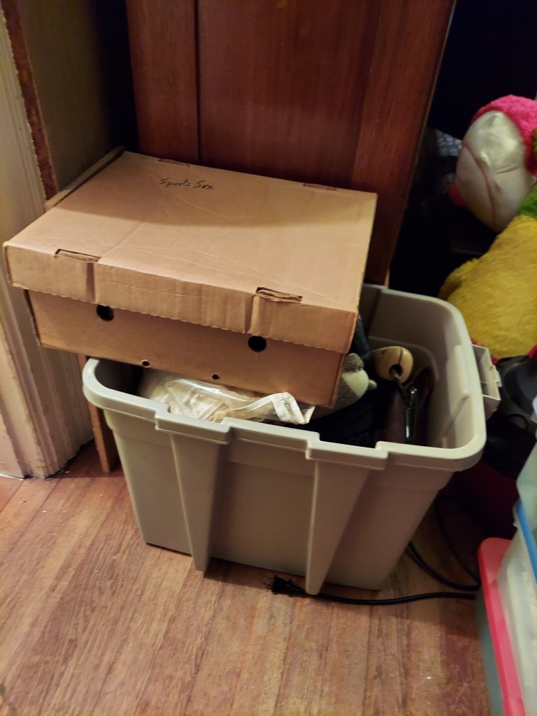 Our 10-year-old’s room is…chaos. When we moved in, the rug for her room was out to be cleaned, so there wasn’t much point in getting things set up in there. The furniture is a jumbled mess, including a full-sized bed frame that will be going away. The bed frame is, in turn, covered with clothes from the closet in our bedroom, because that was the best place to put them during the chaos of move-in. Those clothes are all going away. But, before that, they need to be sorted into piles for specific people, to be sold, or to donate.