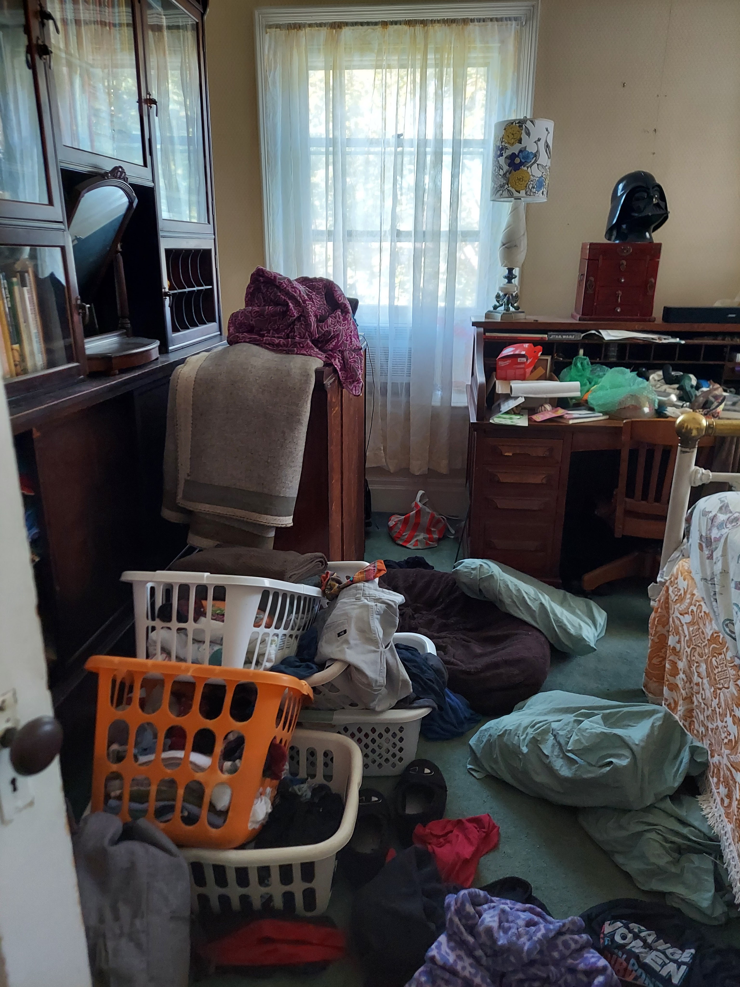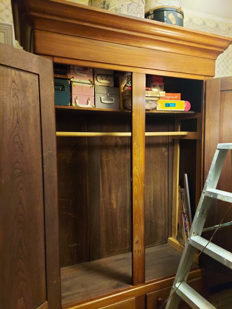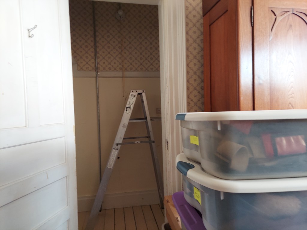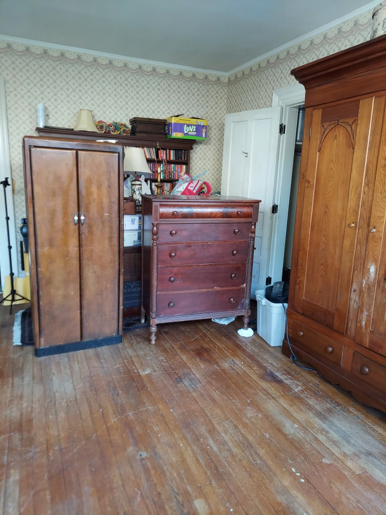The major snag was the closets. My daughter’s room has a good-sized built-in closet, a large armoire, a small armoire, and two dressers. My aunt and I had agreed that she could keep her things in the built-in closet and the large armoire. My daughter doesn’t have that many clothes, and we wouldn’t have another place to put my aunt’s things. So, when I did my pre-move-in cleaning, I ignored the closets. This would have been fine, except the prior occupant, despite promising not to, smoked cigarettes in the room🤢. Lots and lots of cigarettes. I had hoped maybe the closets were contained enough that scrubbing the entire room and leaving an exhaust fan in the window would be enough, but no luck 😫…despite all the work that I had done, with a coinciding dramatic improvement in the degree of smell, the stench from closets bled into the rest of the room. This resulted in a multi-day project we had not planned on.