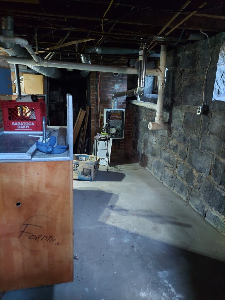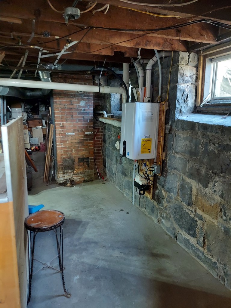 This is a very good thing, as our hot water has been intermittent (at best) since we moved in. The only thing this has to do with my daughter’s room (other than needing to boil water for cleaning 😂) is that we had to take time off from her room to make space in the basement so the guys could work. Fortunately, we’d already done a lot in that part of the basement during the kitchen project, so it only took a couple of hours to tile-game things around.