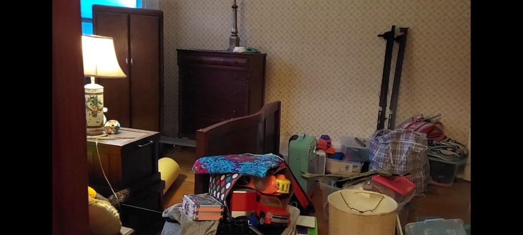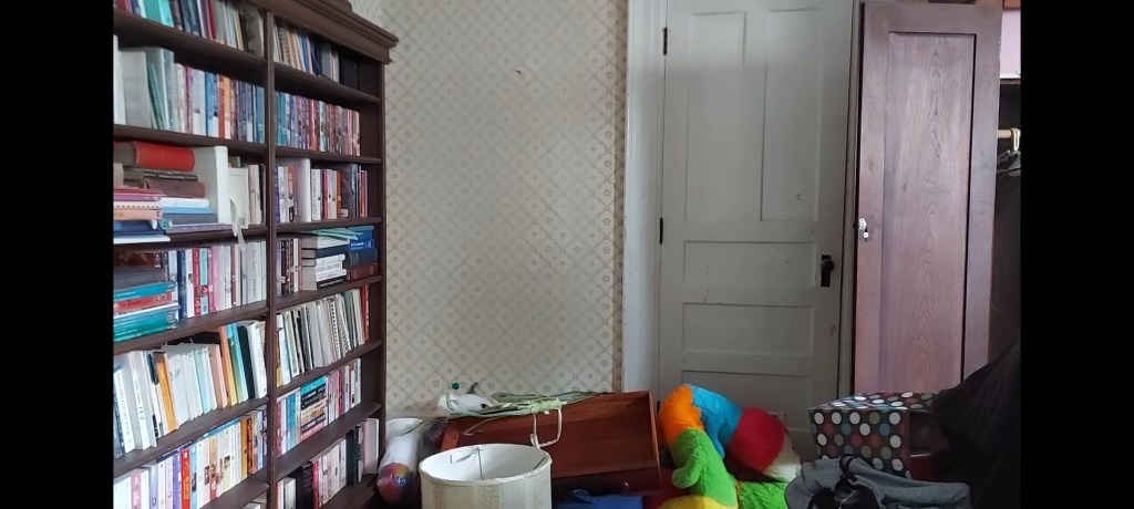 As I’ve talked about in previous posts, we were able to mostly empty three bedrooms prior to moving in. This was important for two reasons – the obvious being so we would have rooms of our own to live and sleep in. The second, and more immediately pressing thing, was simply to have a place to put our stuff! So, that’s what we did – when we moved in, we put our stuff in our bedrooms…and did little else with it while we worked on the kitchen 🤣