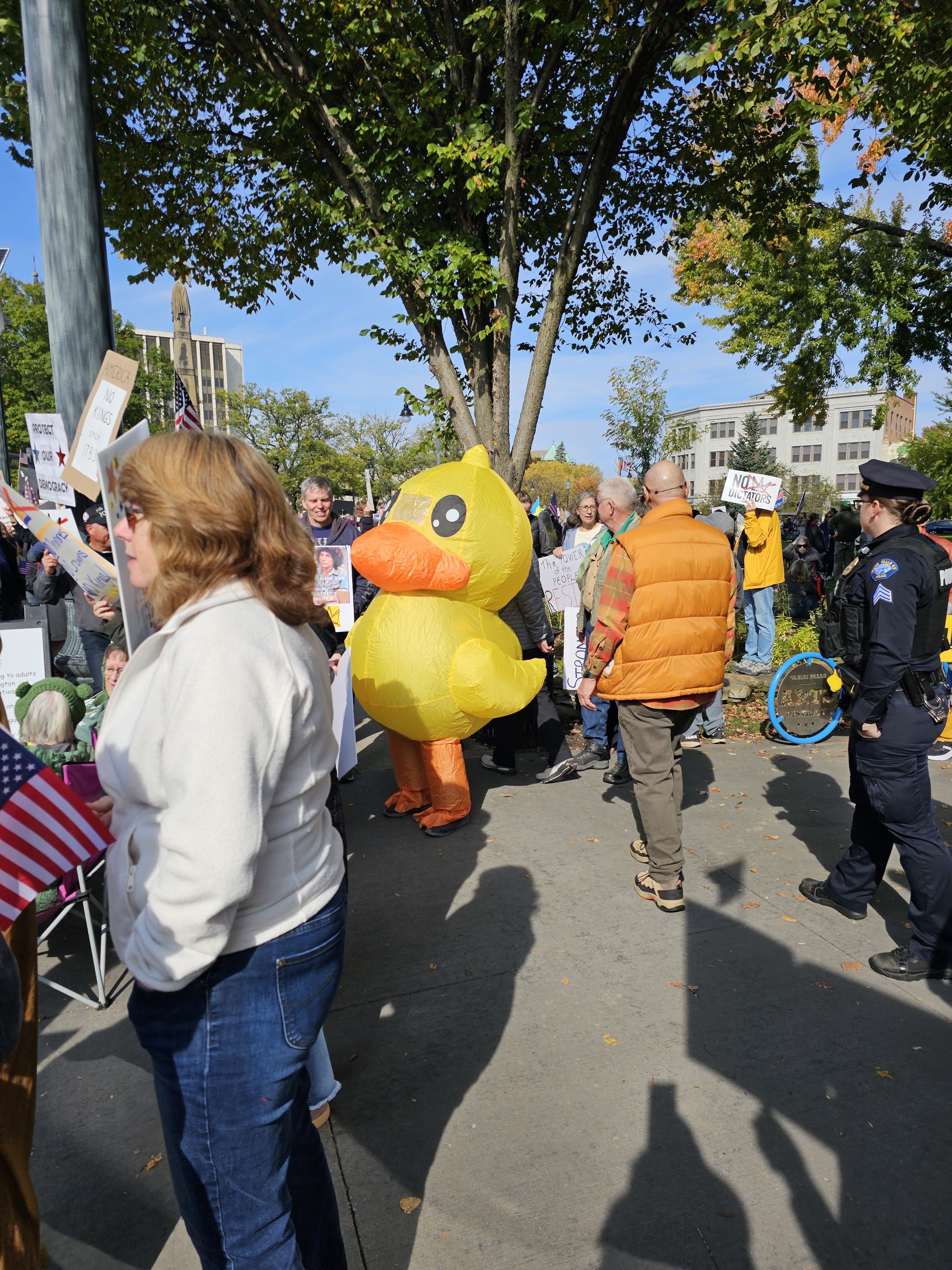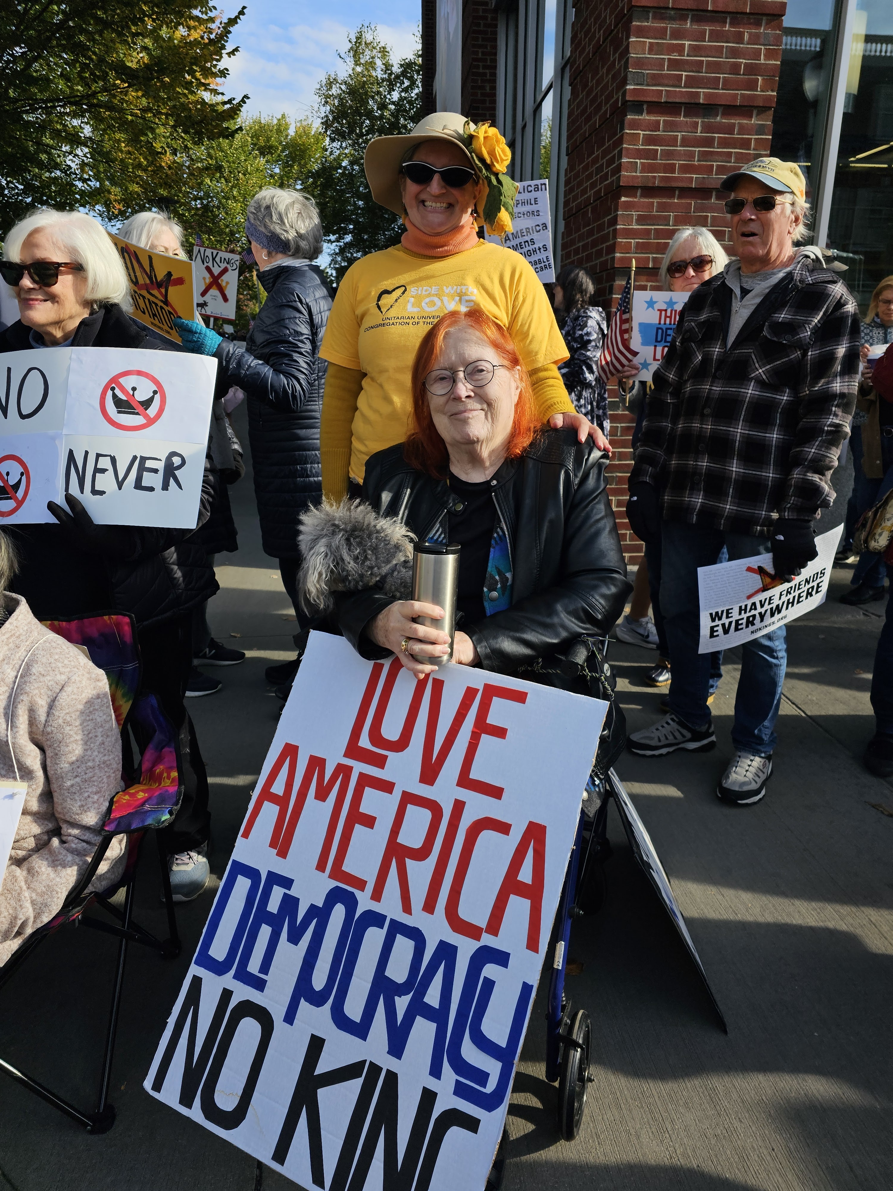 Elle, great to see you with your aunt (and UU T-shirt) at No Kings! Only you could add flair to that T-shirt! And great to see Iris’ dragons have found a well-cleaned new home. L, L
