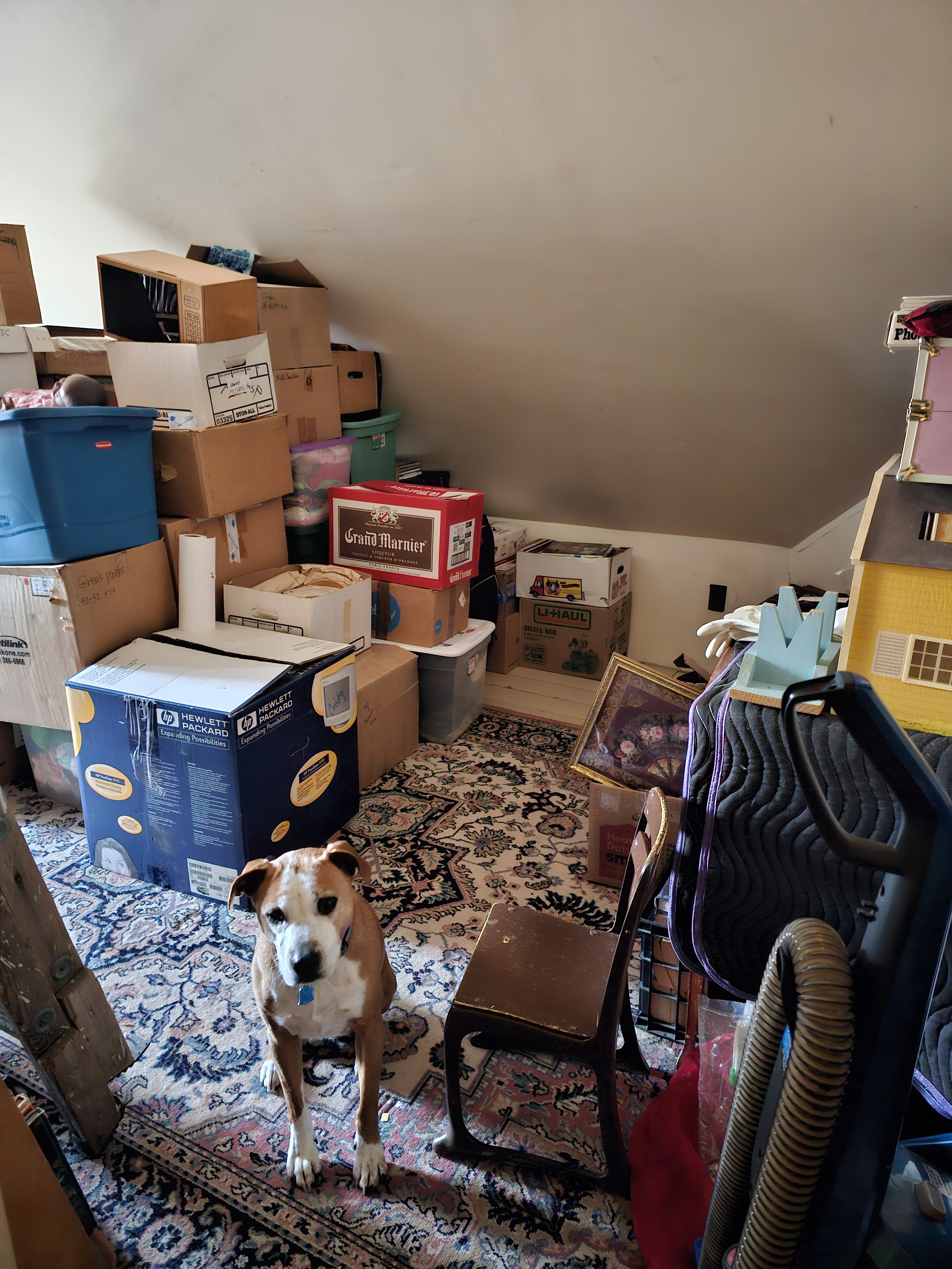 Of course, the ultimate goal is to move things out, and not just around. We are making some progress on that front as well, though of course it’s never as fast as we would like. Our thought is that we should sell as much as possible – by which I mean both that which people will buy, and that which my aunt will allow us to part with – we have a big pile of clothes, and a couple of boxes of books and other random things, that we’ve so far earmarked for sale.